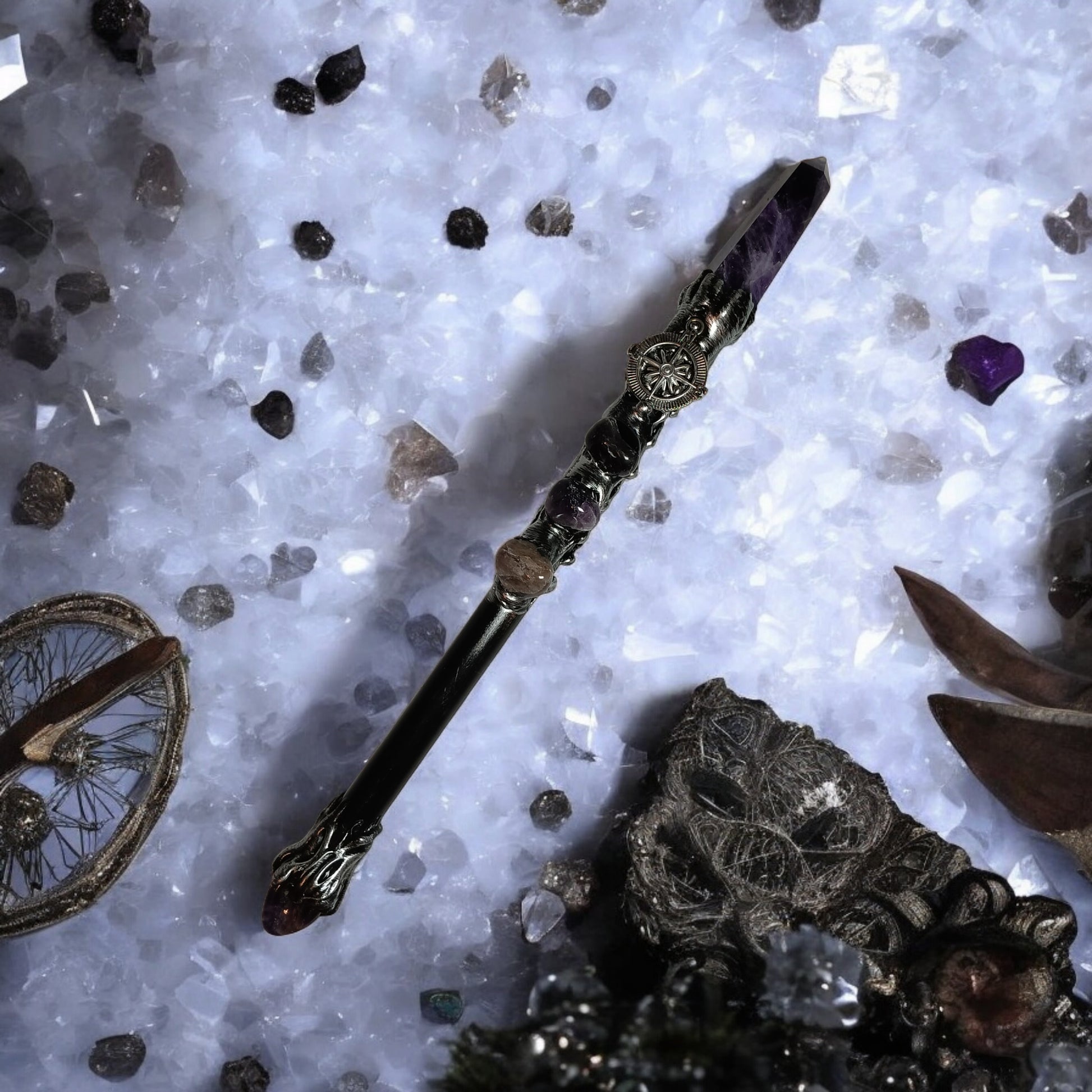 Amethyst & Compass Crystal Magick Wand – Manifestation, Gratitude & Spiritual Guidance