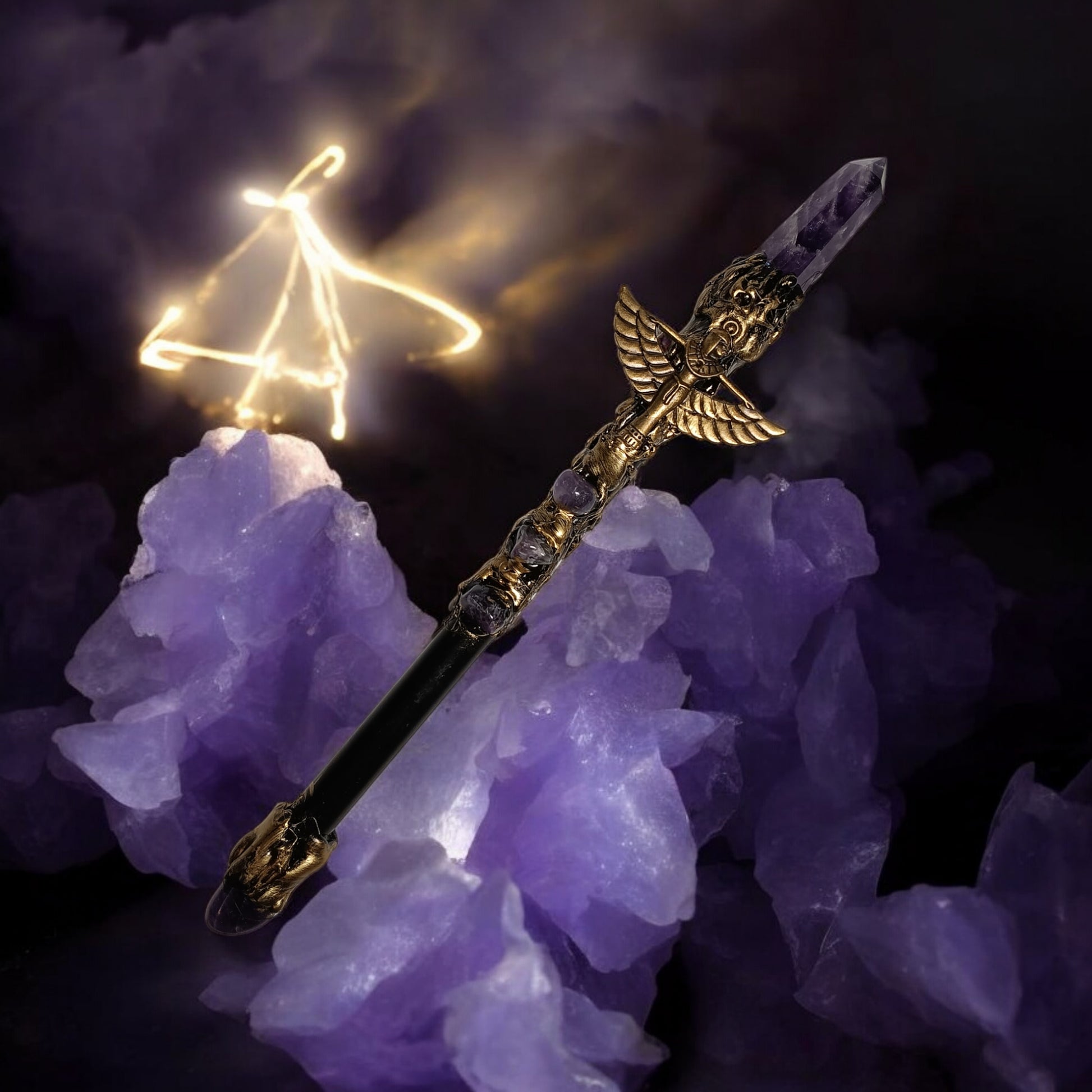 Amethyst & Gold Isis Wand – Divine Feminine Energy & Spiritual Protection