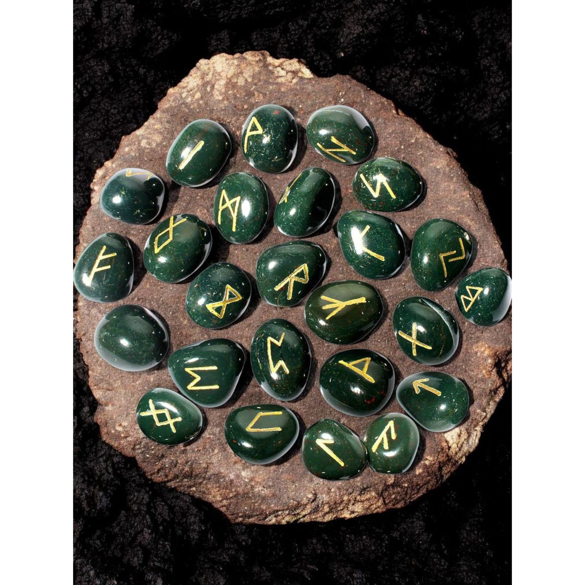 Bloodstone Rune Set with Pouch & Info Sheet – Hand-Carved Crystal Divination Stones