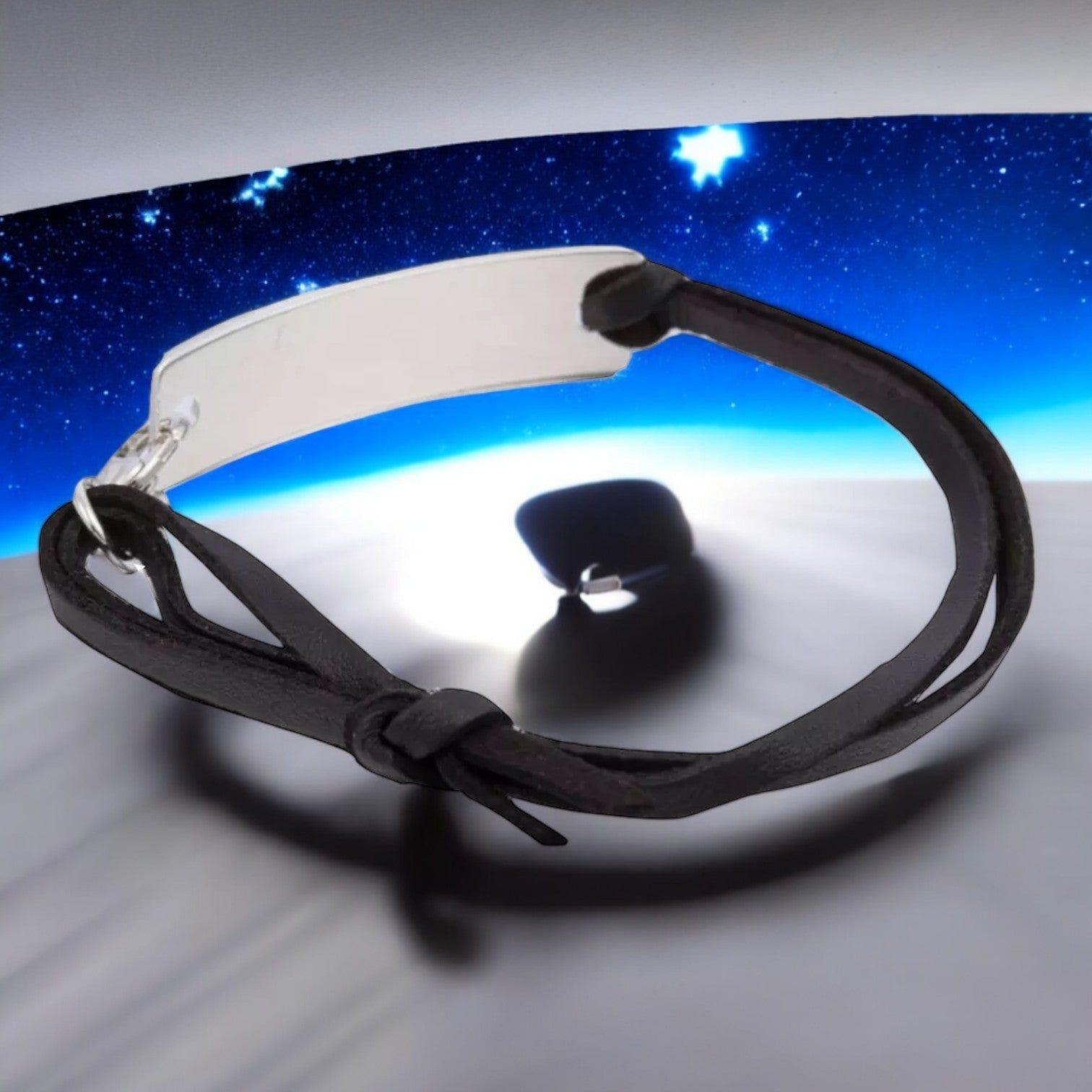 - Faux leather cuff with adjustable slide knot for a custom fit