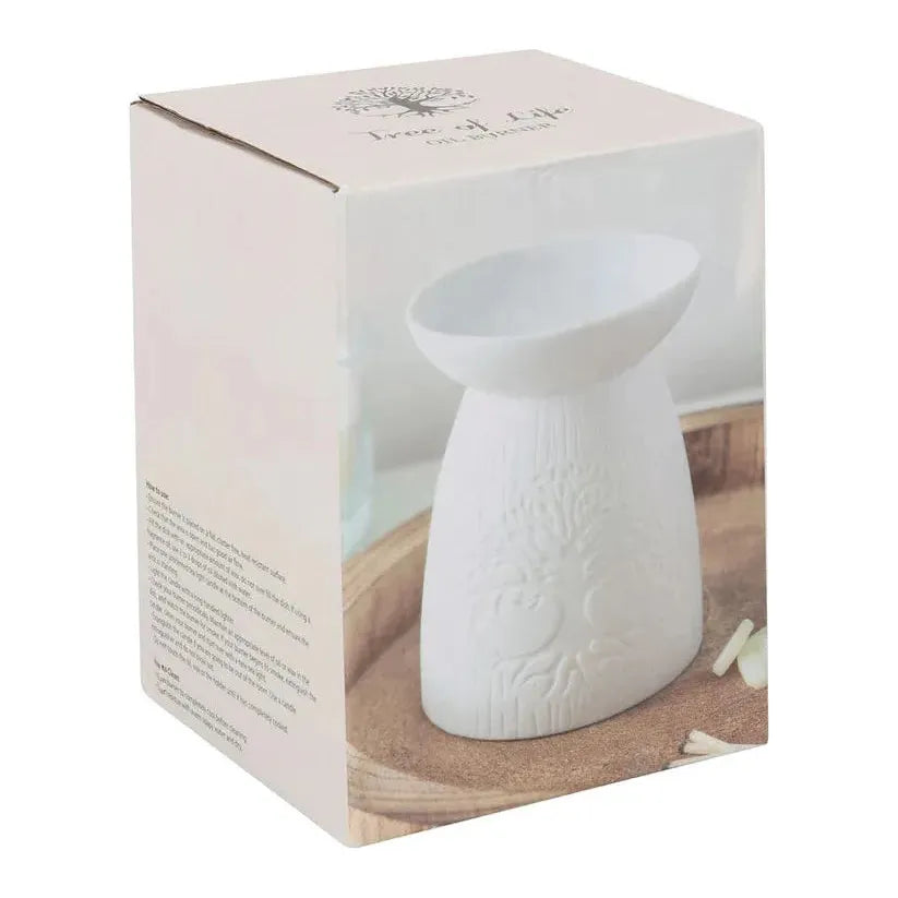 Tree of Life Oil Burner – Matte White Ceramic with Soft Illumination